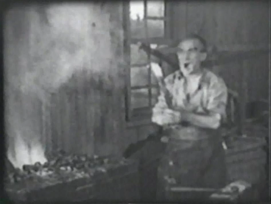 "Dad" Anderson in his blacksmith's shop in July Days